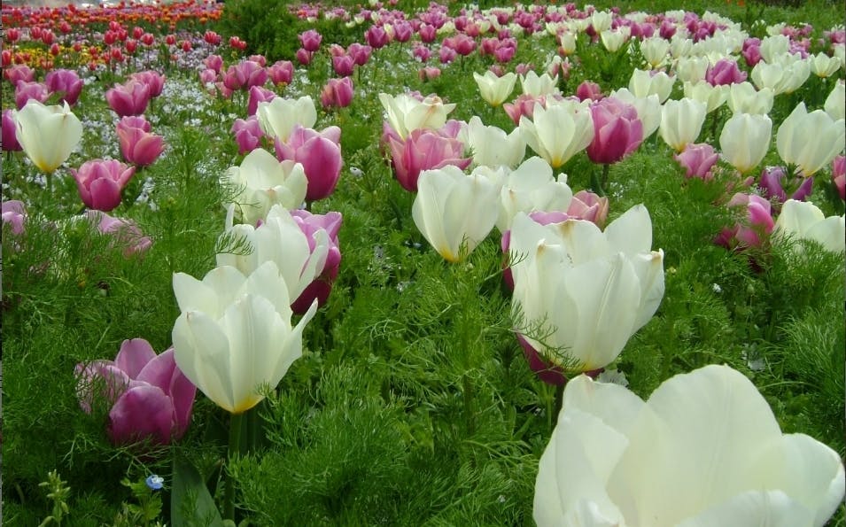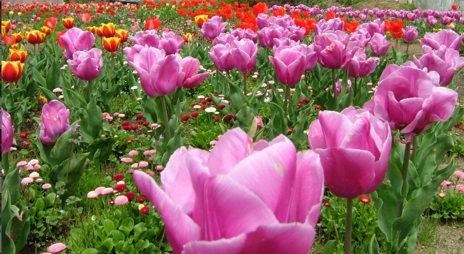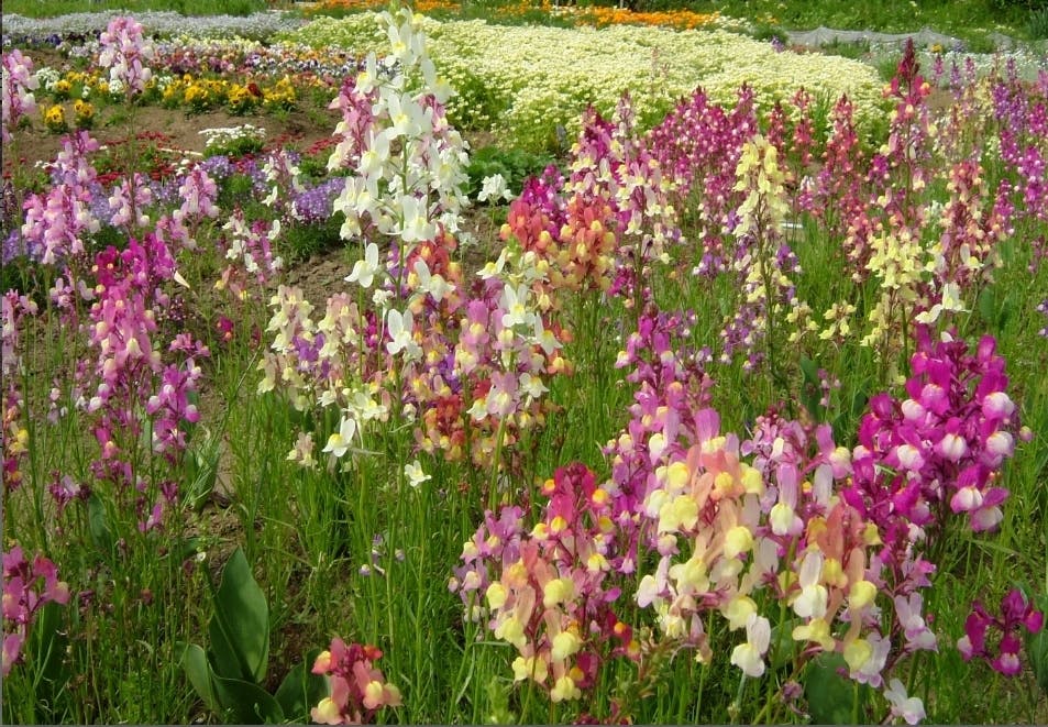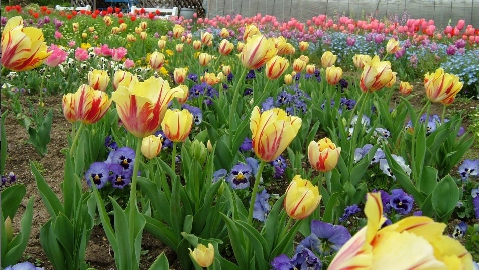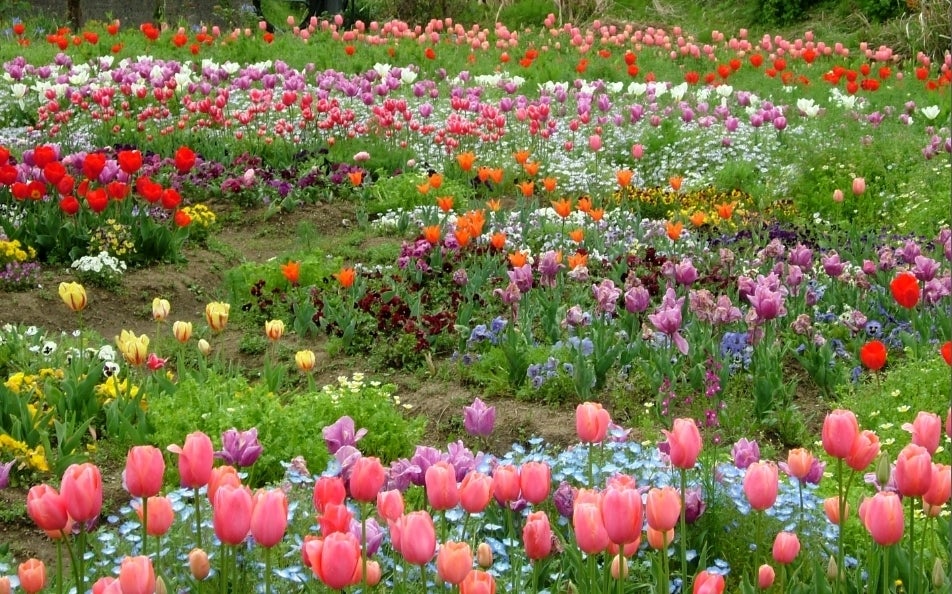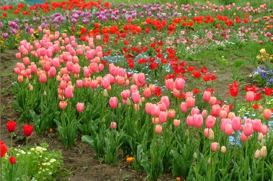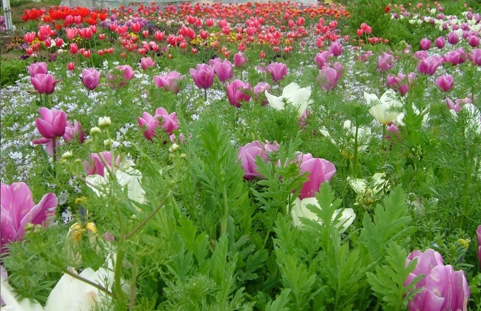 一年草の種子は、11月中旬までにまき、2月下旬から3月中旬にかけて定植する。チューリップの芽がすでに地上に顔を出しているので、注意して植え付ける。