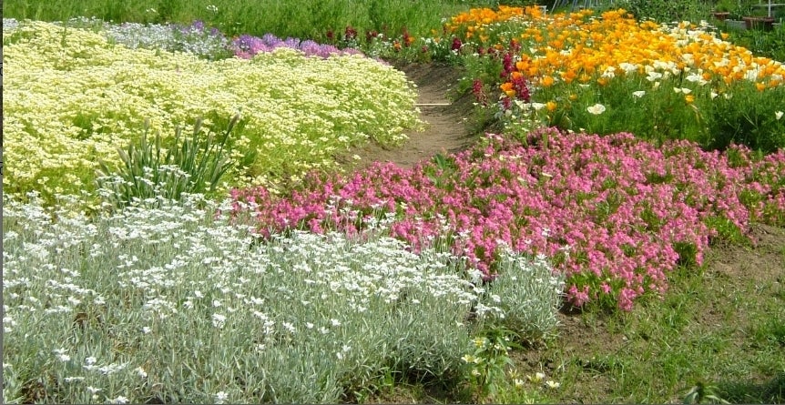 一年草は、子供からお年寄りまで誰もが取り組みやすく、種まきから数か月で花を咲かせ、種子を採取すれば、翌年以降、経費を削減できます。花の色や形、葉の色や形、草丈など多種多様で、変化に富むデザイン、表現方法の使用が可能となります。