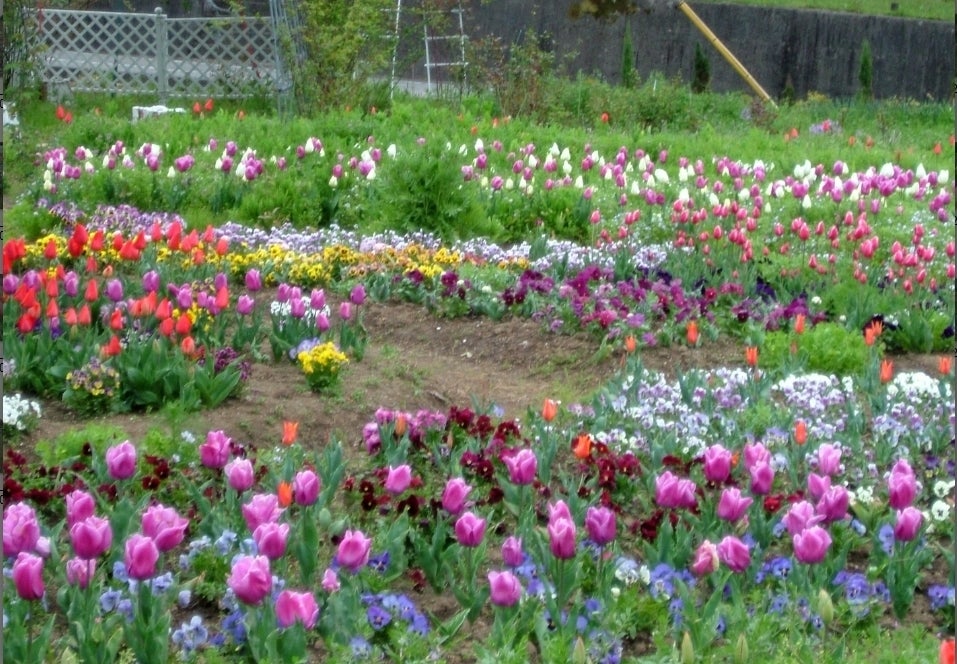 一年草は、春花壇用ならば、1ポットあたり20円でできる。チューリップは、特大球サイズで1球あたり約20円