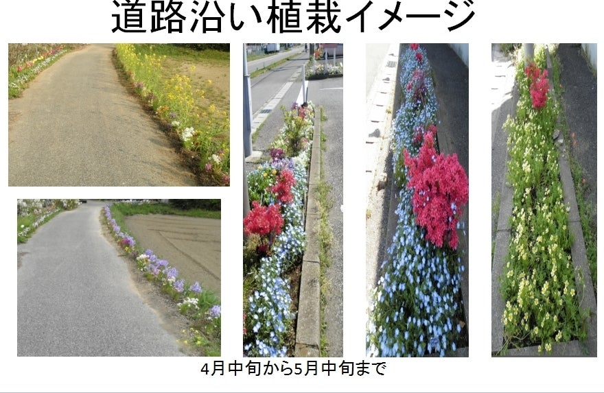 上記の二地点を結ぶ約4キロメートルの道路に、50メートルにつき5メートルの場所に一年草の種をまく。こぼれ種で毎年咲く強健な品種の種子をすでに採取済み。