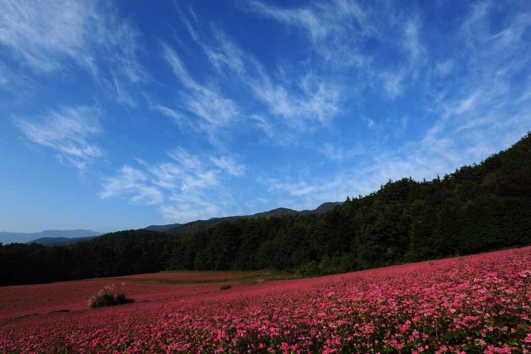 (写真:温泉だけでなく各地の絶景やグルメ情報もピックアップ。写真は長野の赤蕎麦畑)