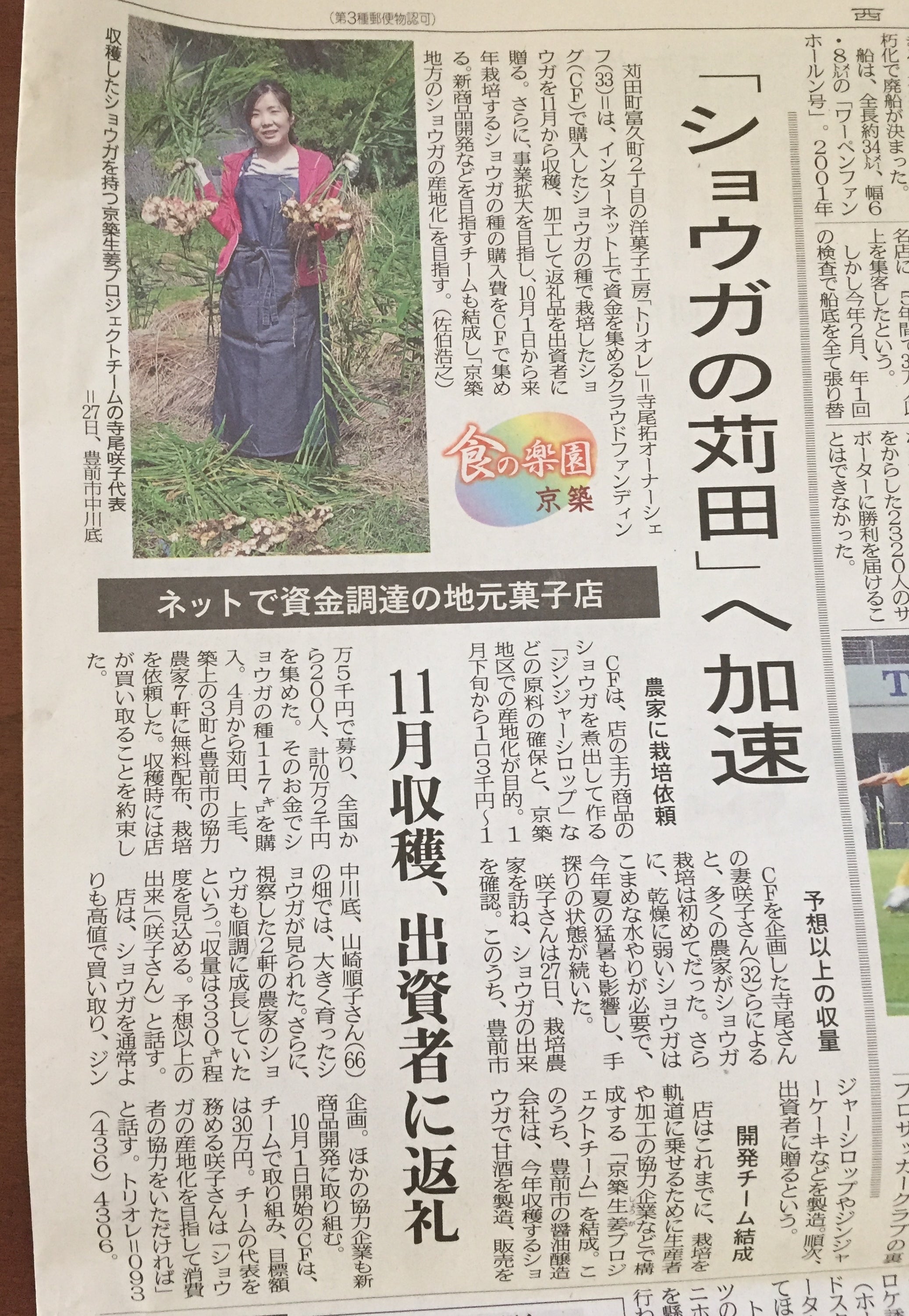 こんにちは! クラウドファンディングを始めて2日が経ちました。 先日は西日本新聞さんの記事に取り上げていただきました(≧∀≦) ありがたいことに、支援したいとのご連絡も頂きました♫ 沢山の方の協力で成り立っているのをとても実感しております。 感謝しかありません。 キャンプファイヤーさんの 「フード・飲食店で人気が上昇中のプロジェクト」で一番上にもきました♫ 嬉しいですね! まだ、個人メッセージに返信できておりませんが、一つ一つ噛み締めて読んでおります。 残り38日応援のほどよろしくお願い致します!