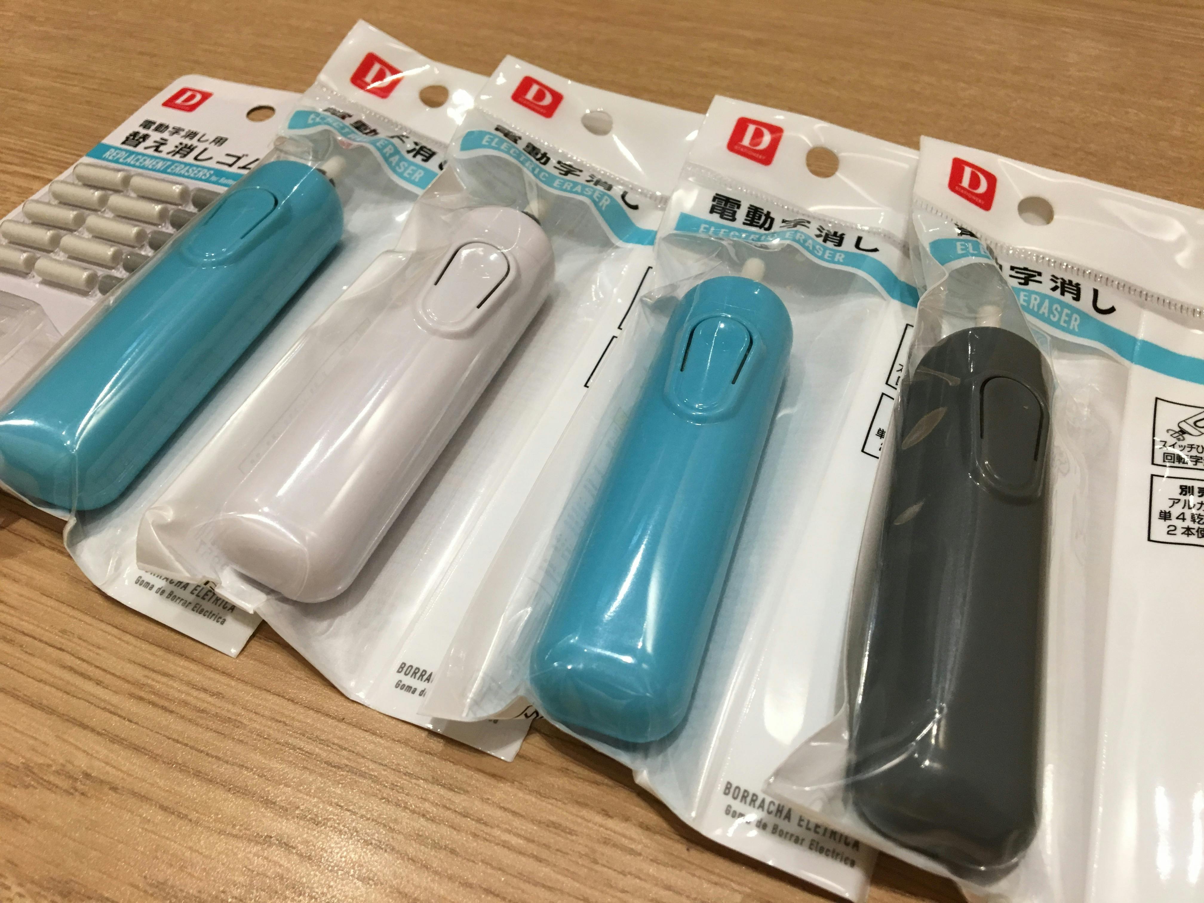 写真:100円均一ショップで売られている電動消しゴム(ダイソー「電動字消し」)