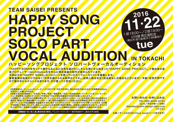 当オーディションおよびレコーディング(2017年1月@帯広市を予定)に参加可能で、