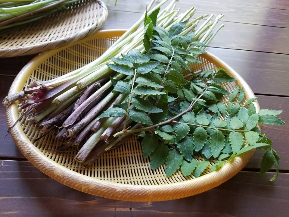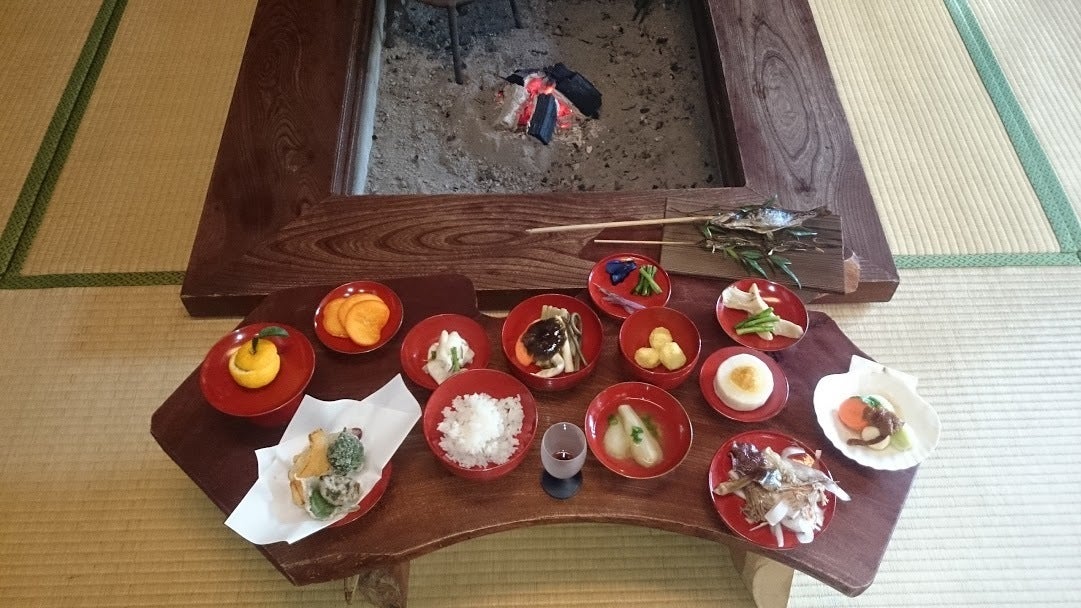山菜やキノコ、野菜に海・川魚。そして手作りの箸と能登伝統の輪島塗の器でお食事を提供しています。