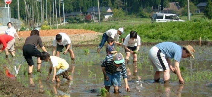 昔ながらの囲炉裏のある家屋に宿泊し、山菜・キノコ採りや薪割り、田植えなど日本の農村生活を体験できます。