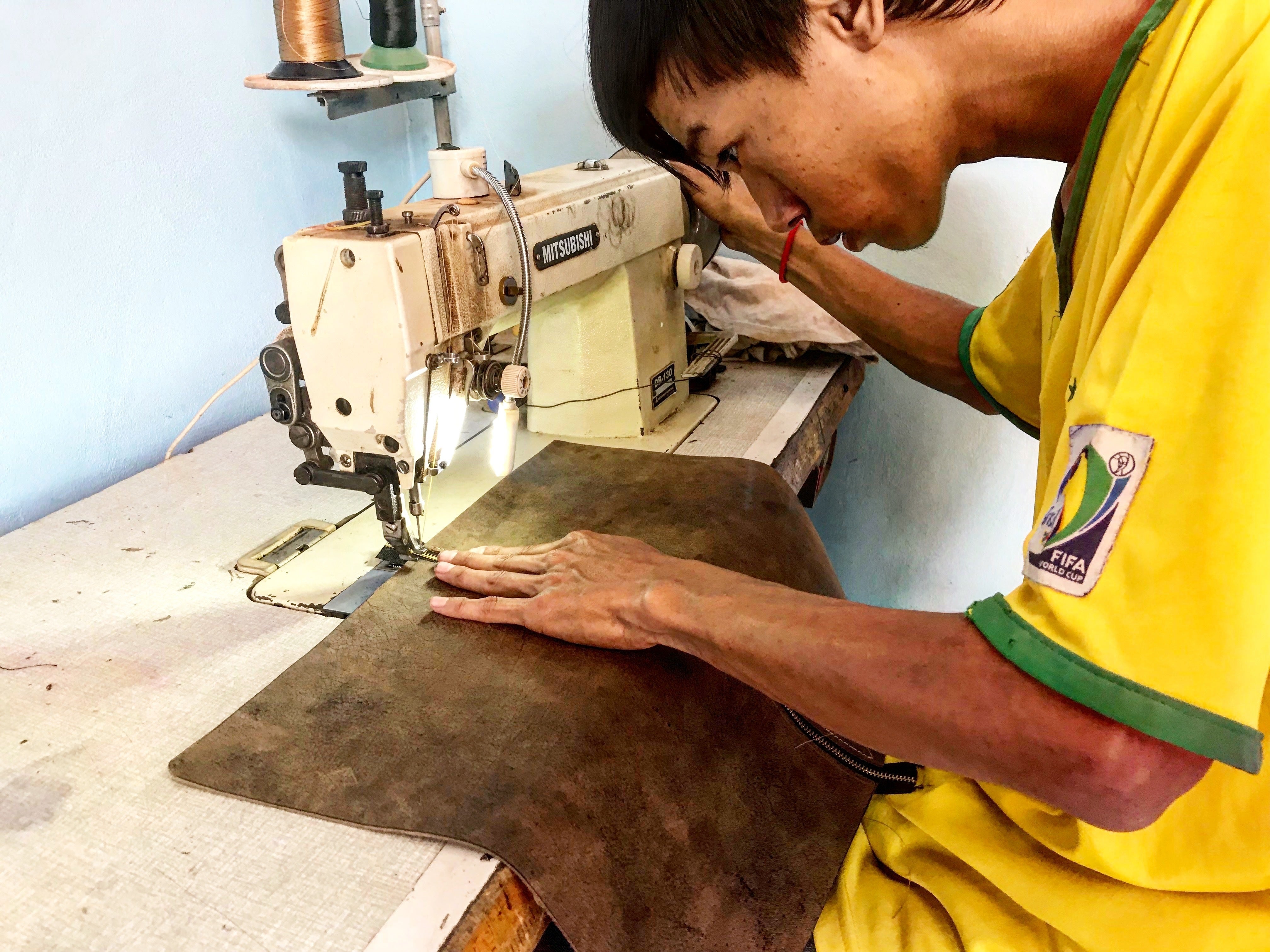 カンボジアの決して綺麗とは言えない砂ぼこりまみれの工房で、ウチの職人や縫い手のおばちゃん達が一生懸命作ってくれたカバンが、神戸の1着7万も8万もするブティックに堂々と並んでいる光景を見た時は正直こみ上げてくるものがありました。
