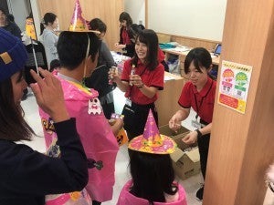 2選手は15時~の会の特別ゲストとして登場し、参加者約10名のお子様と共にハロウィンハットとマントを作りました。