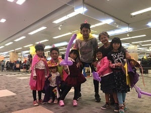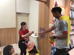 ハットとマットが出来上がると全員でイオンの中を練り歩き。3つのお店で「ハッピーハロウィン!」を合言葉におかしをもらいに散策しました。