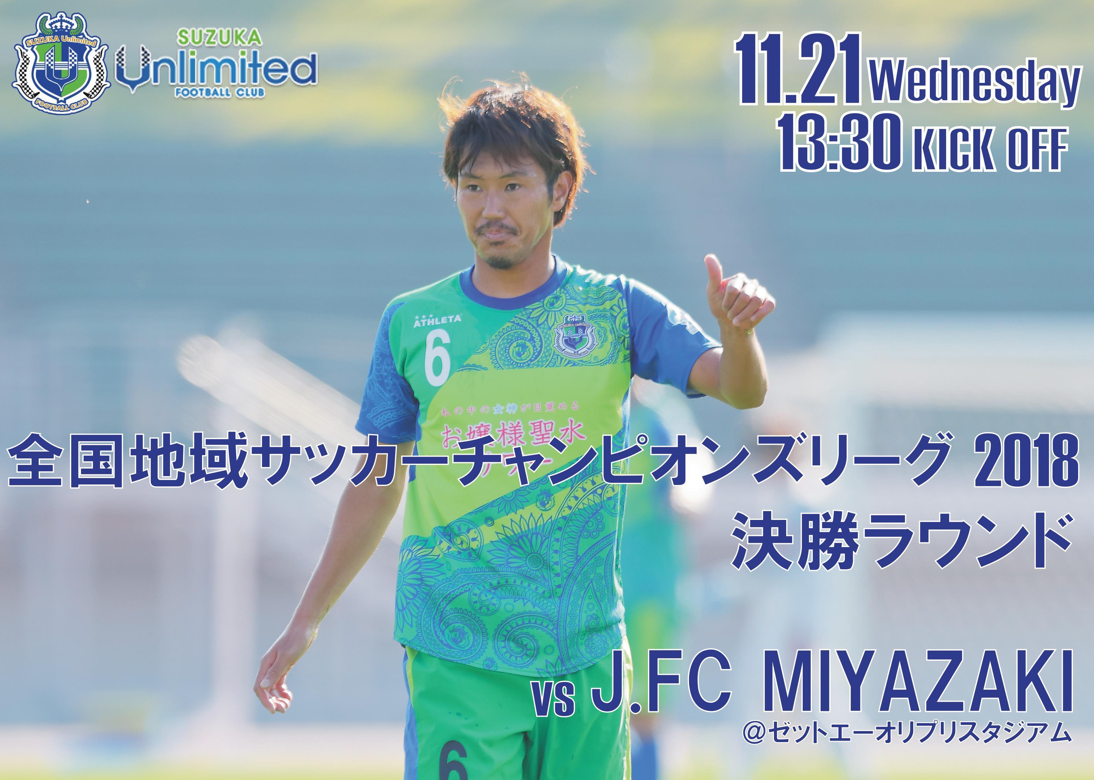 11月21日(水)に開催されます全国地域サッカーチャンピオンズリーグ 決勝ラウンド J.FC MIYAZAKI戦に関しまして下記の通りお知らせいたします。