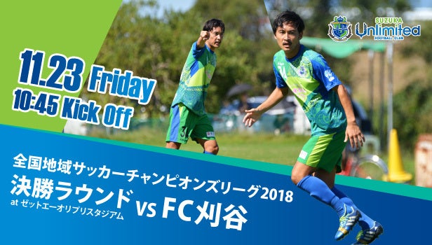11月23日(金・祝)に開催されます全国地域サッカーチャンピオンズリーグ 決勝ラウンド FC刈谷戦に関しまして下記の通りお知らせいたします。