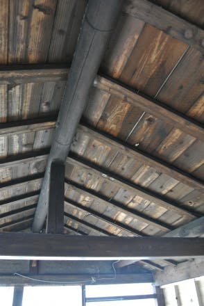 残念ながら今の生活には少し不便なので新しく作りかえることにしましたが、この水回りが入っていた広さ6畳ほどの小屋の天井は、台所として使われていただけあって、いい感じにススけていたので、柱や梁をそのまま残すことにしました。