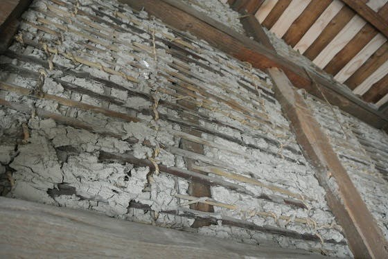 屋根裏部分は、竹小舞下地(?)が見えたままの状態。