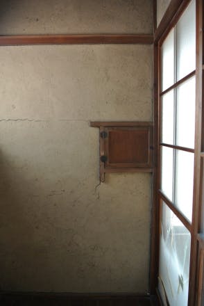外の雨戸を収納している戸袋につながっていて、雨戸を開け閉めするとき用の窓でした。