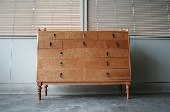 『赤坂蚤の市』への出店にあわせて製作したチェスト。 アメリカンブラックチェリー材です。 まだ納得がいかないところがあるけれど、何とか形になりました。 本当は、この上に上置きが来る予定ですが…間に合わず。 でも作ってみないと分からないことも多く、自分の作りたいものを形にしていくのはなかなか難しいです。 開店までにまだまだアイテムを増やさなくては…