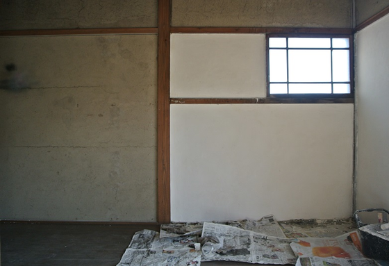 毎日少しずつしか進んでいない改装。 前回の活動報告からもう2週間もたってしまいました。 台風が来そうだったので、腐りかけていた柱をすべて付け替えました。 でも、温帯低気圧に変わったみたいですね、ひとまず安心。 写真は床下。 補強したら、今度は水平がずれてしまったかも…? そして今日、壁に漆喰を塗り始めました。 もともとの壁は土壁で終了していて、少し作りかけのような状態なので、掃除しても掃除しても家の中が土っぽいのです。 漆喰を水と混ぜ、鏝で塗っていきます。 慣れない作業、だんだんうまくなることを期待して、まずは見えない納戸の壁から。 まだ探り探りなのですが、日曜日には少し手伝いを頼んだので、できるところまで塗る予定です。
