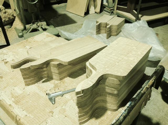 遅れているカッティングボードの製作…ただいまの状態。 洗ったりして水に濡れる商品ですので、剥ぎ目がない一枚板で作っています。 が、幅のある”柾目”の材料は少ないため苦労しました。 これから面の加工、レーザー加工、そして塗装へ お待たせしている皆様、申し訳ありませんが、いい商品をお届けしますので、楽しみにお待ちください。