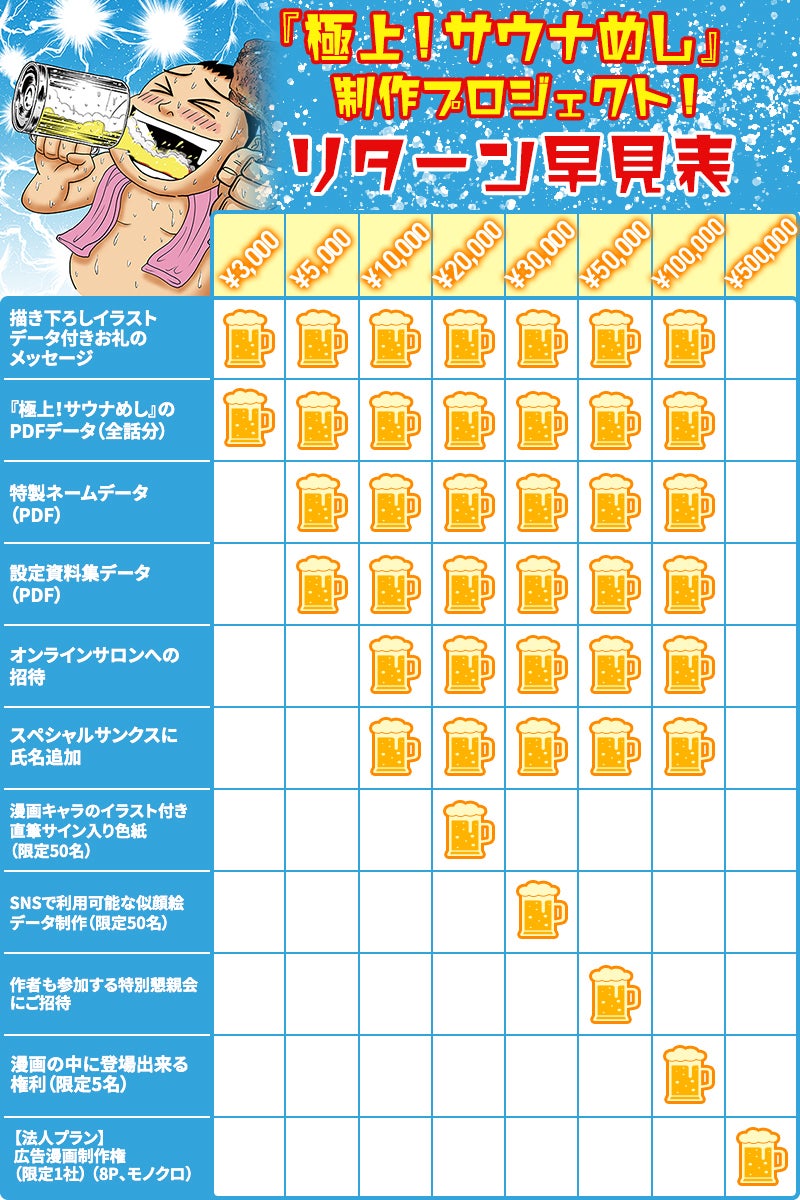 そこで、本プロジェクトのリターン早見表をご用意いたしました!