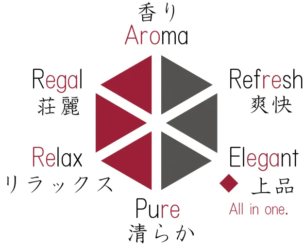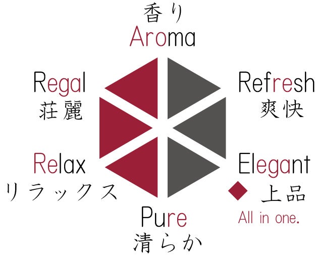 そして6角形の右下にある◆は、3つの機能的価値と3つの情緒的価値の6つの価値がAll in oneで1つになっている、という意味を込めています。