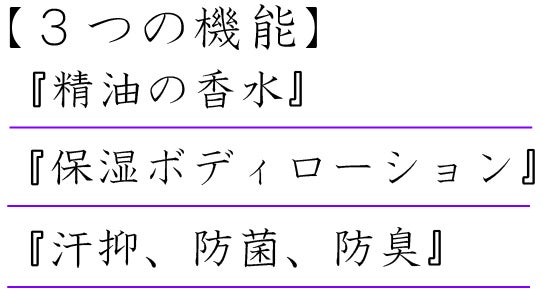 汗は本来無臭です。しかし、肌から分泌された皮脂と汗が混ざり合い、細菌が分解することで独特のいや~な臭いが発生します。そこで本商品は汗を止める機能、雑菌を繁殖させない機能、臭いを抑える機能の3つを有しています。