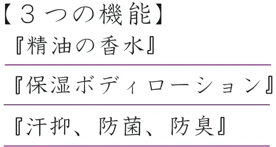 「高い保湿性」、「精油ベースの優しい香水」、「清潔感あるデオドラント」の3つの機能が1つになったオールインワン化粧品を作ることが出来ました。