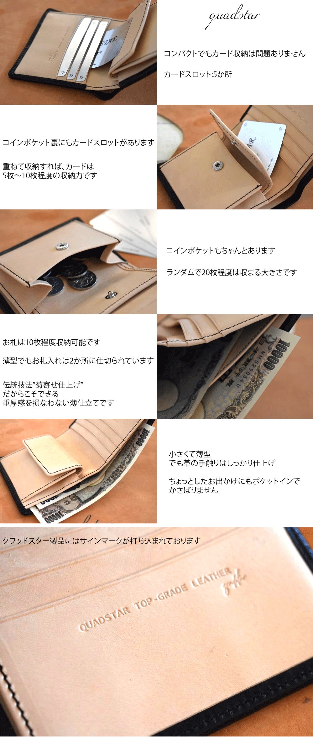 このプロジェクトではイタリアと日本を代表する"2種類計10色"の革素材を自由に組み合わせて、自分だけのプティ財布を製作して頂けます。クワッドスターが自信を持ってお勧めする革は、イタリア製 ワルピエ社"ブッテーロ"と日本製 "栃木レザー"です。