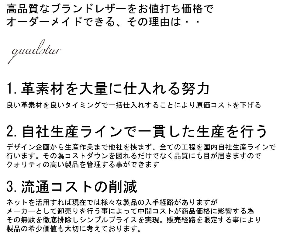 "クワッドスターのコンセプトにある、トップグレードレザーをもっと身近に感じてほしい・・