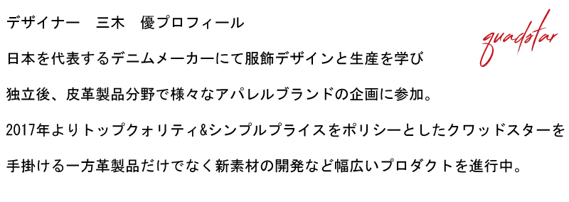 "クワッドスターのコンセプトにある、トップグレードレザーをもっと身近に感じてほしい・・