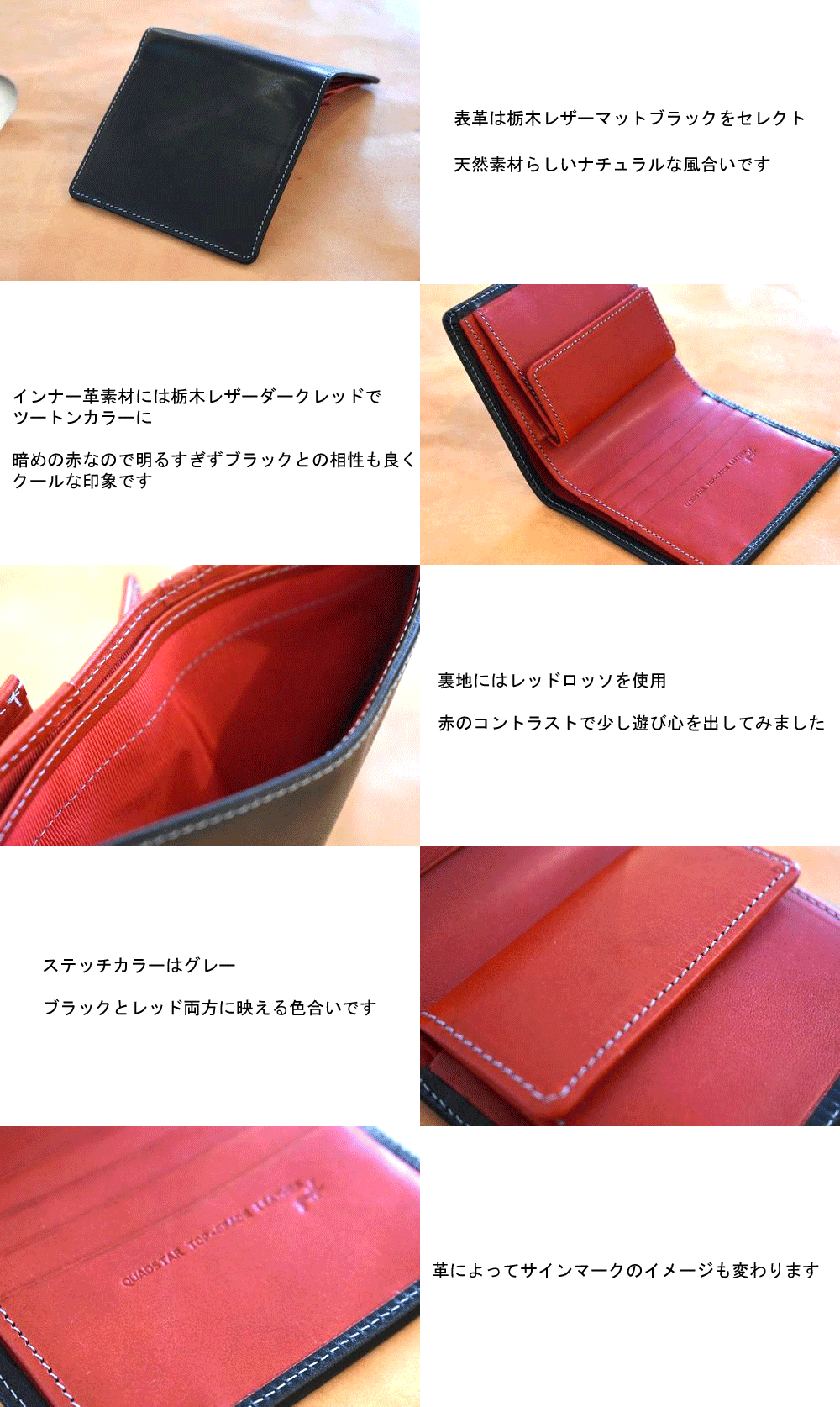 財布のインナーレザーの選択です、表革と同色でもバイカラーでもOKです。