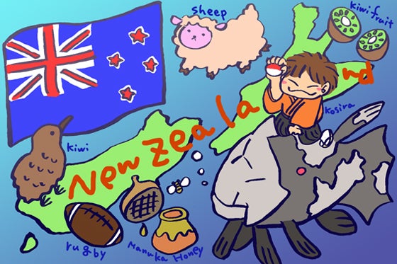 ニュージーランドはオーストラリアにほど近いところにある国で、映画「ロード・オブ・ザ・リング」のロケ地としても知られています。人口よりも羊のほうが多い国、なんてことも言われています。フルーツのキウィの産地としても有名ですが、同じ名前のキウィという鳥も生息しています。この鳥は見た目がフルーツのキウィそっくりですが、名前の由来は実は逆で、フルーツのほうが鳥のキウィに似ていたからキウィと名付けられたのだとか。