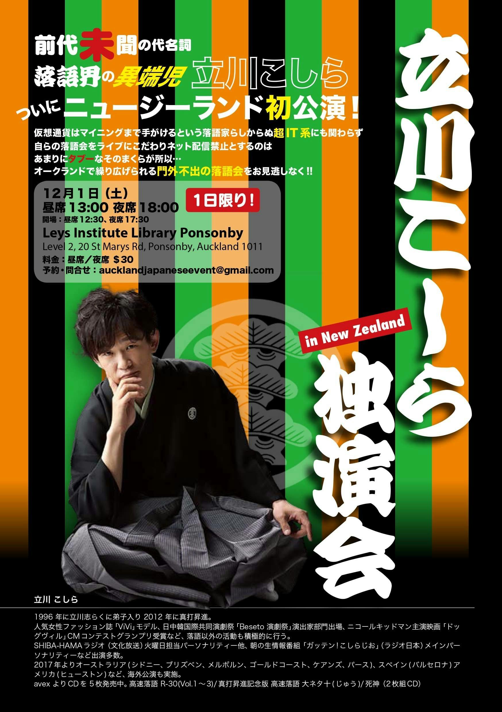 2018年12月1日(土) 立川こしら独演会 in New Zealand