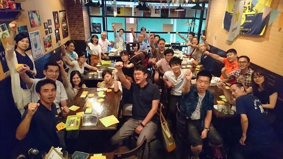 ご支援いただいた方の紹介です。岡山でフューチャーセッションの普及活動を行う、就実大学経営学部教授の林俊克先生です。林先生の著書『ええ、会議が楽しいですが、なにか?』は「決まらない…」「盛り上がらない…」「機能しない…」会議・ワークショップの運営に悩んだら読む本。フューチャーセッションの神髄は「総論賛成、各論自由」をモットーに楽しみながら合意形成を行うところにあると思います。写真は9月のフューチャーセッションの様子。中央が林先生です。