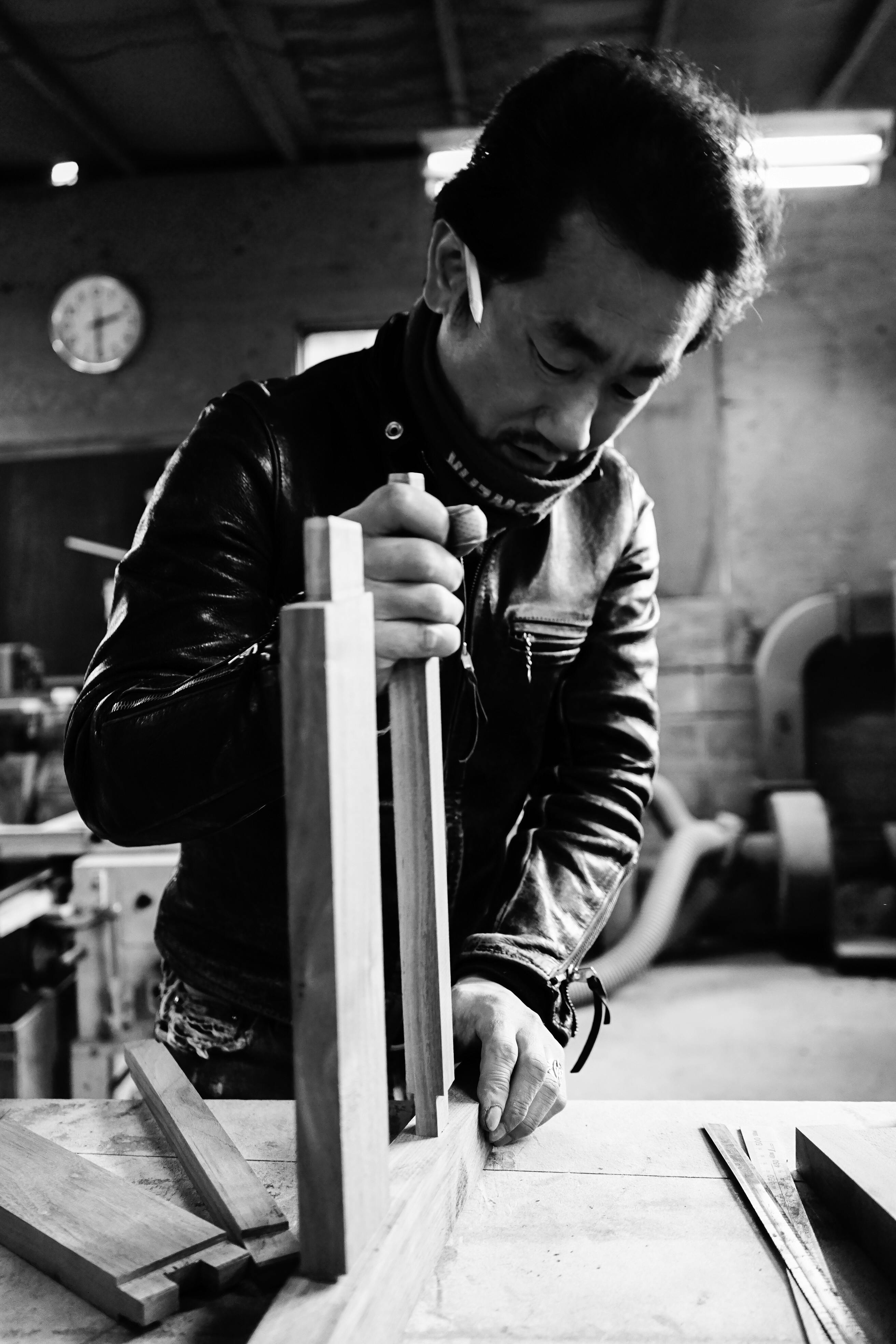 (写真は毎年冬にお世話になっている。山口県萩市の中原木材工業の家具職人。中原忠弦さん)