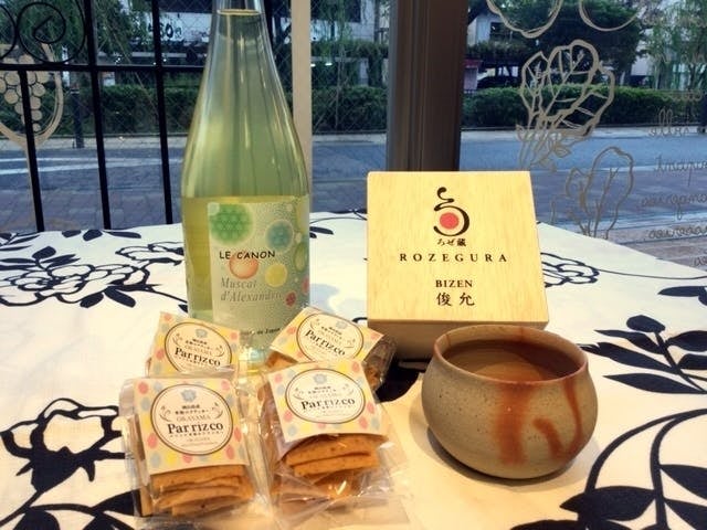さらに、ロゼワインを飲むために作られた備前焼(岡山県の特産)のグラスで、