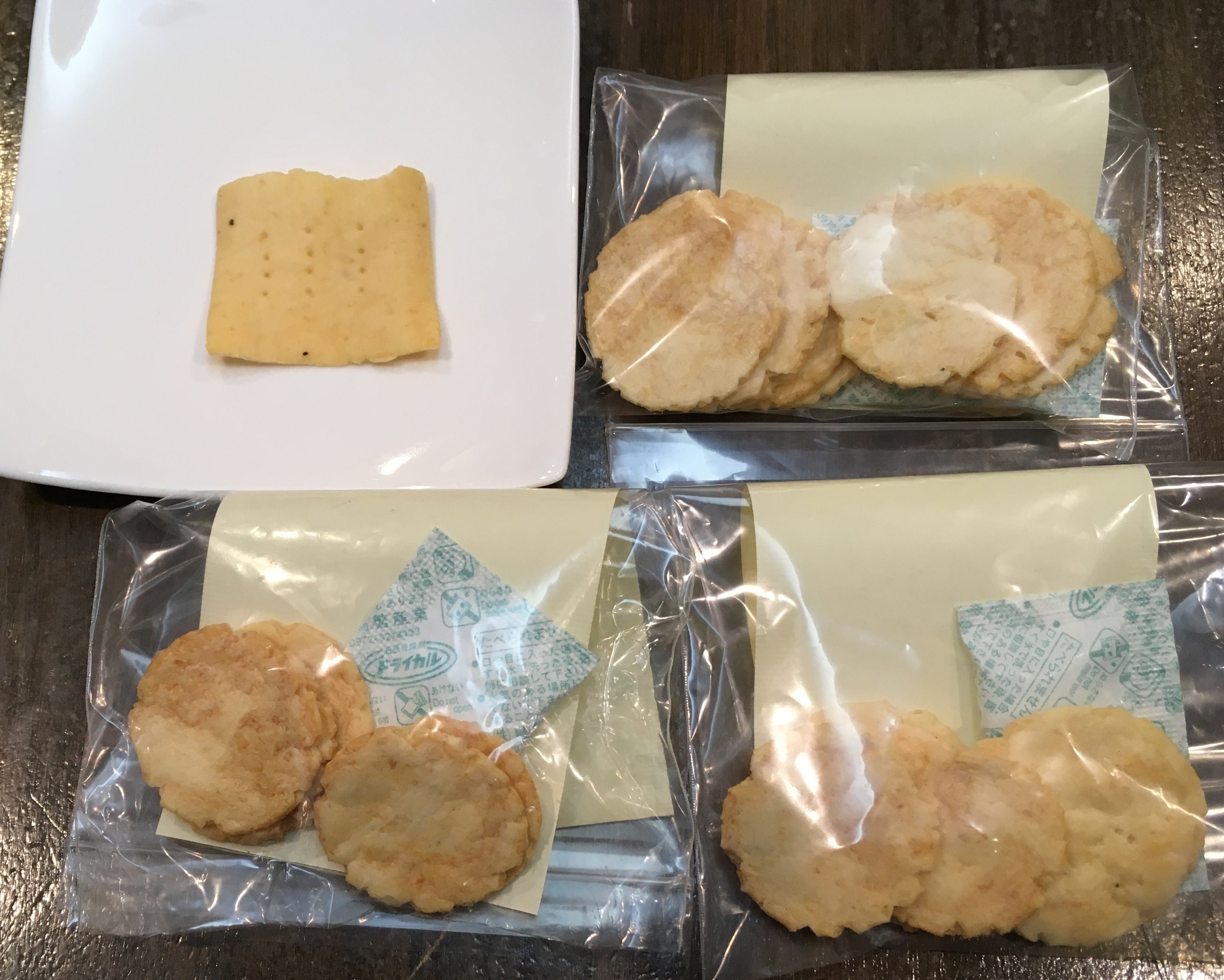 2018/12/29 15:36先日、par riz co(パリッ粉)の生地を真田社長にお渡しして、試作品をお願いしていたのですが、その品物が本日宅配便で届きました。左上が、当社で作っているもの。その他は、真田さんが焼く温度を変えて3パターン作ってくださいました。食感もよく、あとは微調整でなんとかなりそうです。形は、丸になりました。 もっと見る【製造委託工場】