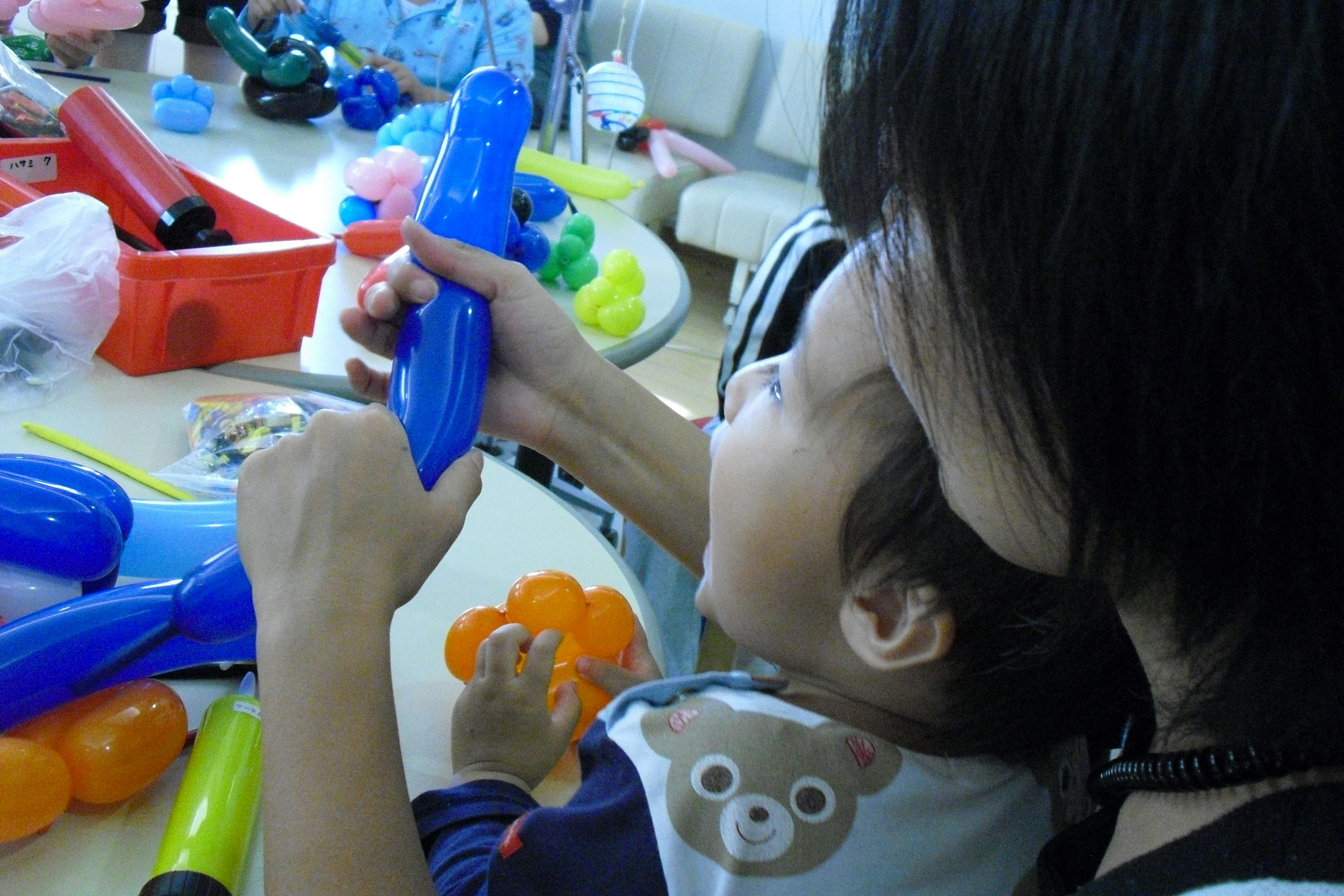 ぷくぷくばるーんは、主に小児がんなど難病で長期の入院を余儀なくされている子どもたちに、子どもらしい心からの笑顔になれる遊びの時間を届けている、遊びのボランティアです。