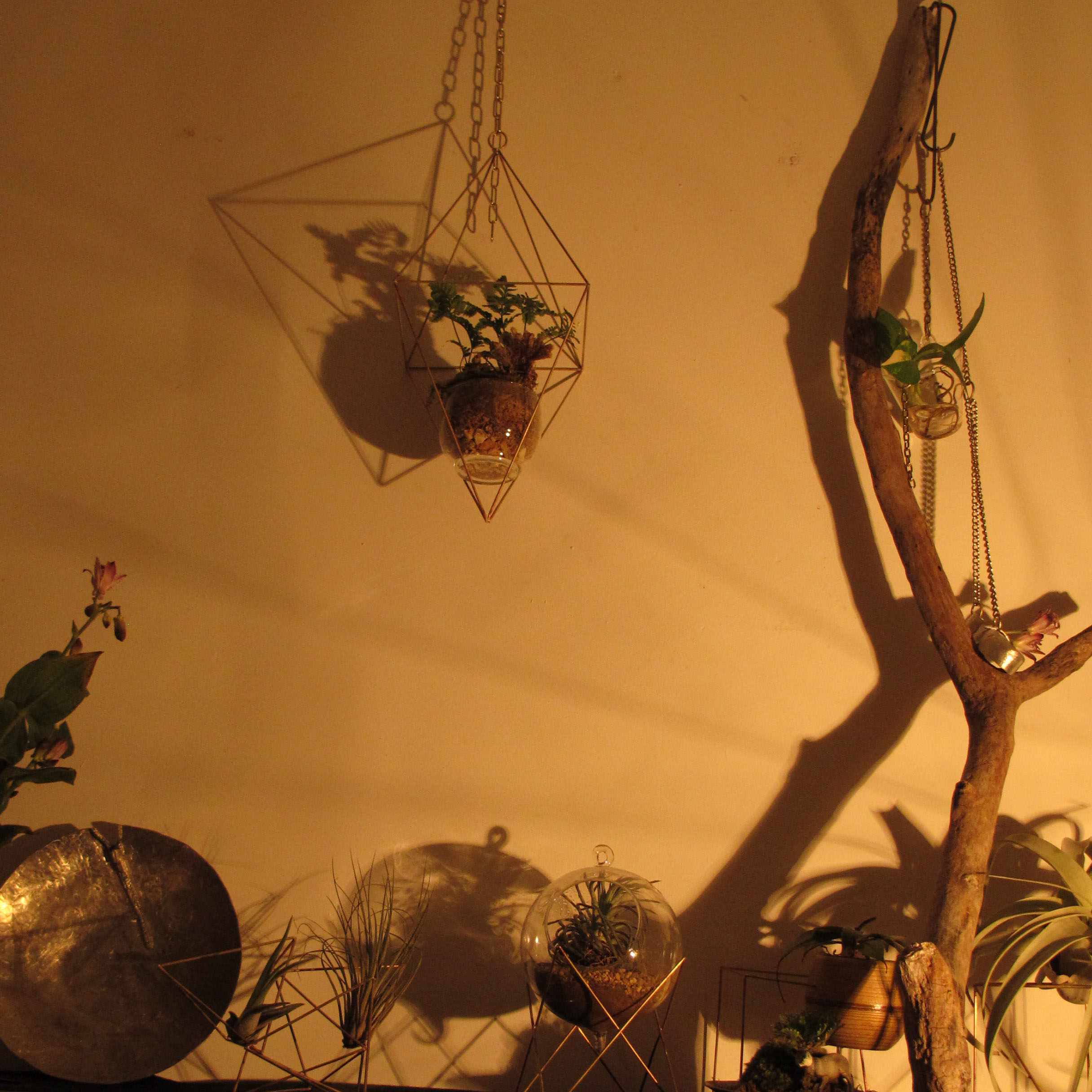 街ではお花屋さんに限らず、お洋服屋さんや雑貨やさん、飲食店でまでエアプランツやドライフラワーは販売されるようになったのに、まだまだ飾り方が少ないと思っています。水がいらないんだから、逆さむけてもいいし、ひっかけるだけでもいい。