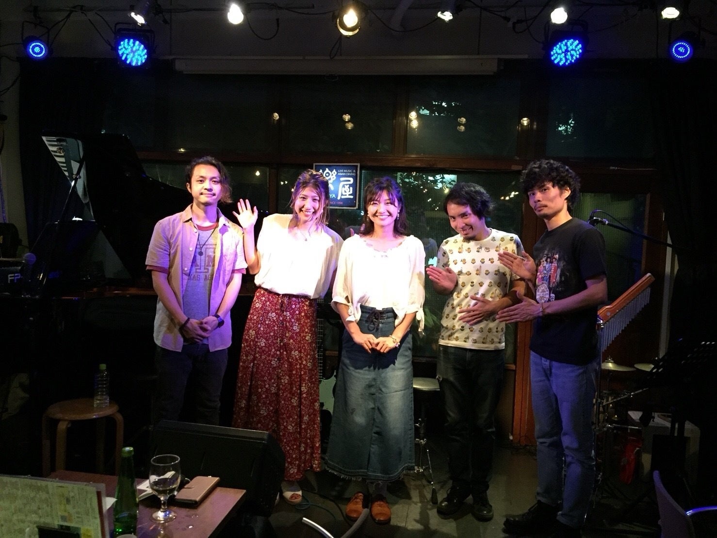 (左から、Pf.斎藤渉、Vo.小林夕夏、Gt.Vo.ゆりえ、Per.稲葉"やすべえ"康典、Ba.林あぐり)