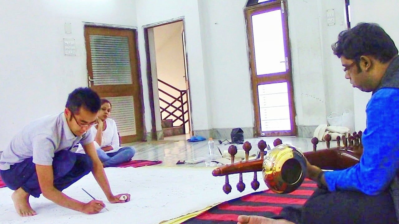 サロッド奏者とLive painting