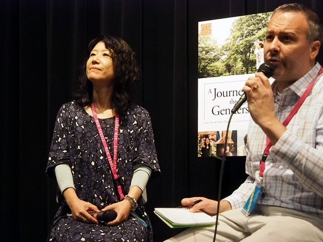 Q&Aも盛り上がりました!さすがアメリカ、次々と手が上がって、それぞれのご意見とともにたくさんの質問が寄せられました。セクシュアリティにおけるキリスト教的概念との違い、私にとって一番感動したシーンはどこか、日本の差別の現状、Xジェンダーがなぜ増えているか。。。など。本当に熱心なお客さんが多かったです!