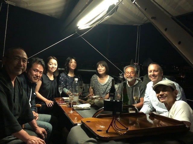 そしてこの日の夜は映画祭の打ち上げ。食材は豊洲から直接取り寄せたという高級魚のどぐろだのウニだの。。。そして映画祭の理事所有(!)のワイナリーで作られたワイン。そして場所は。。。瀟洒なリゾート地にあるヨットにて。これまたセレブな感じ。