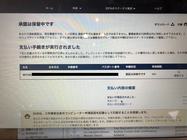 でも。。。この旅の中で一番記憶に残ったのは。。。出発のとき、成田空港で経験したまさかの搭乗拒否!知らなかったんです、事前にアメリカ当局に渡航申請をしておかなければならなかったなんて。。。(オオヌケヌケヌケ)みなさま、アメリカに行く時はESTAというシステムで3日前までには渡航の承認を取っておきましょう。ちなみに、搭乗拒否されたのが、離陸1時間半前。それから大急ぎでパソコンをWIFIにつないで、航空会社の人に手取り足とり教えていただきながらウェブ申請の手続き(しかもすごくややこしい)。。。承認が降りるのに24時間かかるとも72時間かかるとも言われるなか、40分で承認が届きました。その時離陸の45分前。間一髪でした。もう二度とこんな経験はしたくないよ〜