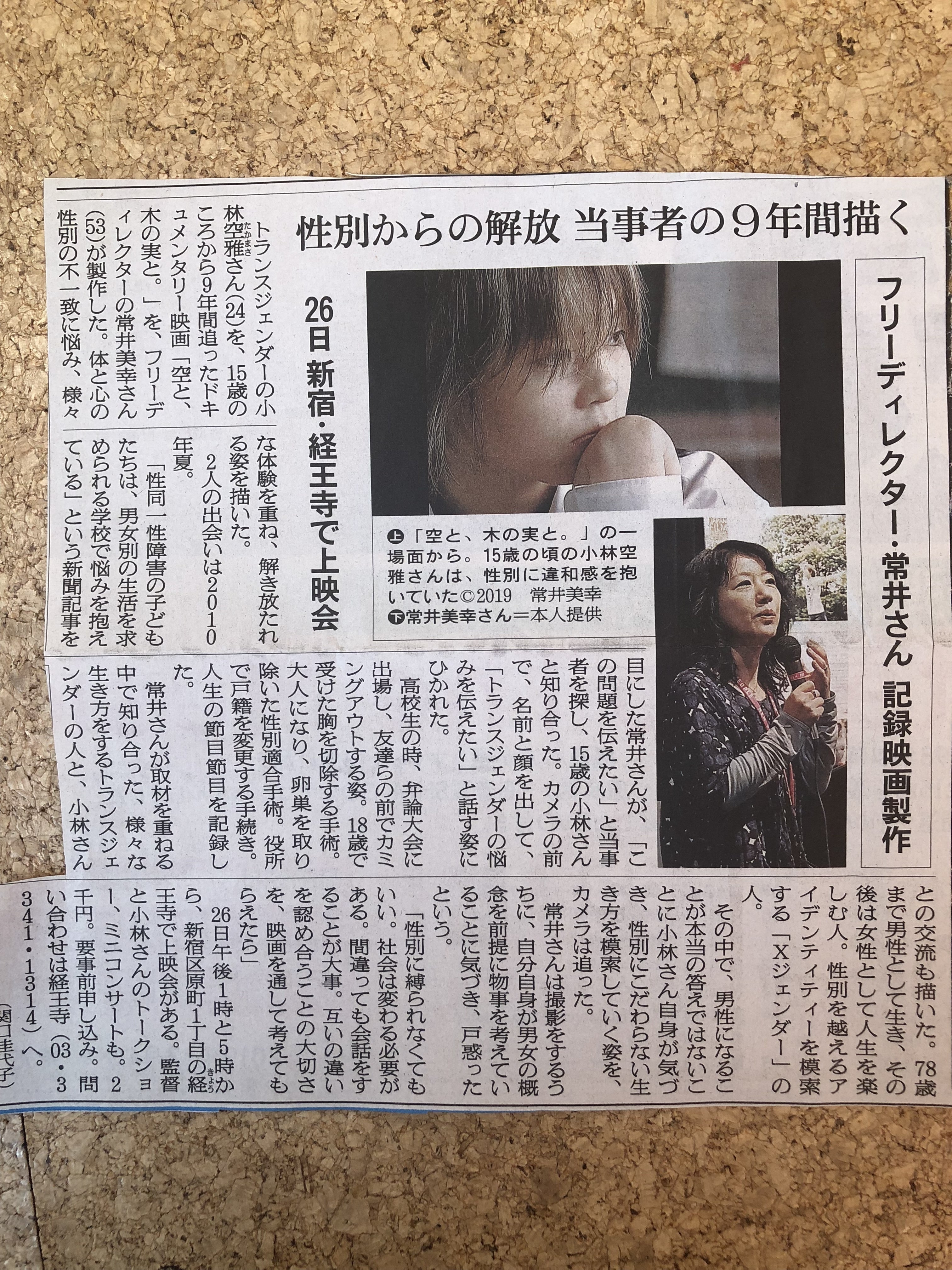 朝日新聞10月23日朝刊に映画を紹介していただきました!