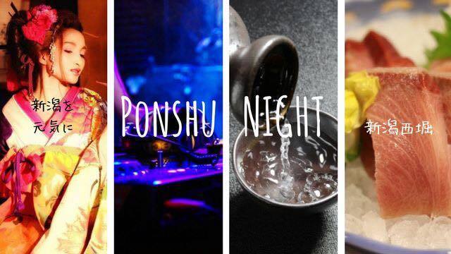 「PONSHU NIGHT」は、クラブミュージックを聴きながら、新潟地酒を飲み、おいしいモノを食べる異業種交流イベントです。