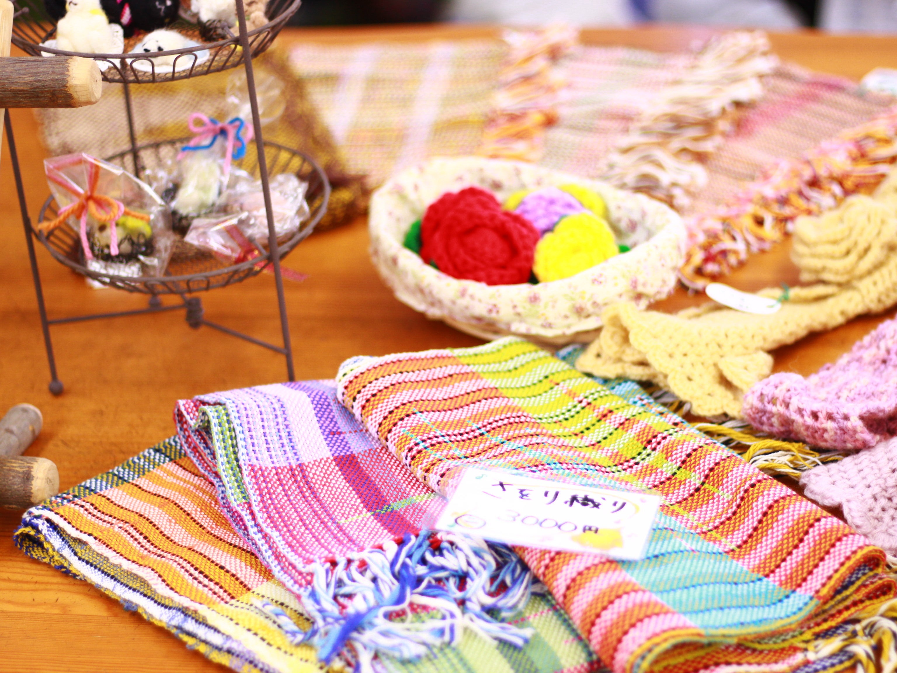 ②さをり織りやアクリルたわしをはじめとした自主製品はバザーで出店しています。