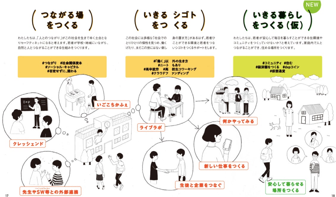 また、2017年11月には、高校生が「いきるシゴト」をつくるための新事業を開始。高校2校のなかで進路相談室「ライブラボ」を開始しました。
