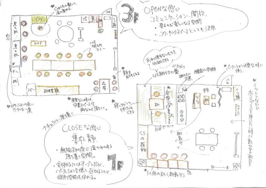 ・全体的にはオープンだがパーテーションを区切って個別の空間も作れる