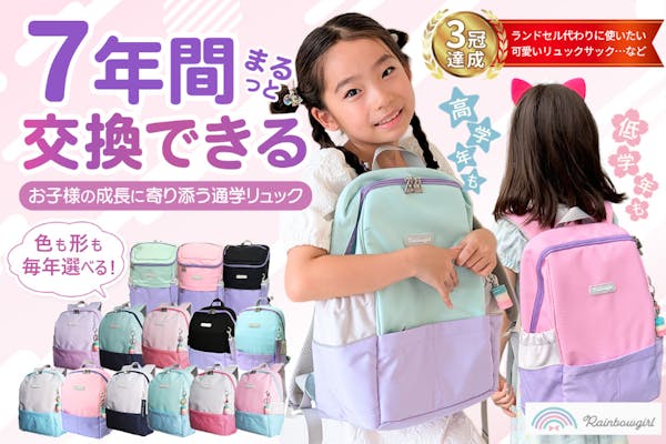 7年間 毎年交換!レインボーガールの小学生向け通学リュック 学童 塾 習い事にも