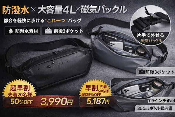 防潑水 × 大容量 × 磁気バックル !都会の日常をスマートにするボディバッグ