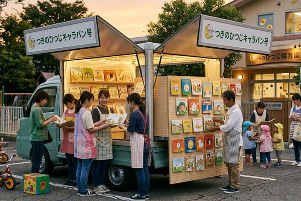 未来の翼を育てる絵本を届ける「つきのひつじキャラバン」号で、本の砂漠地帯を巡回